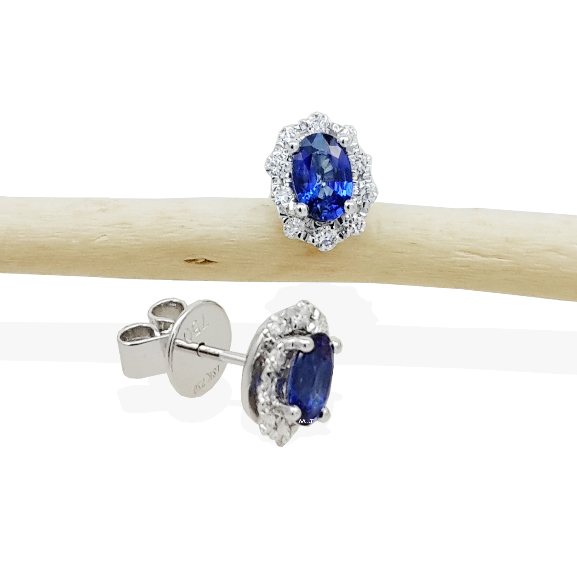 Blue sapphires total weight 1.11 carat. Diamonds total weight 0.32 carat.