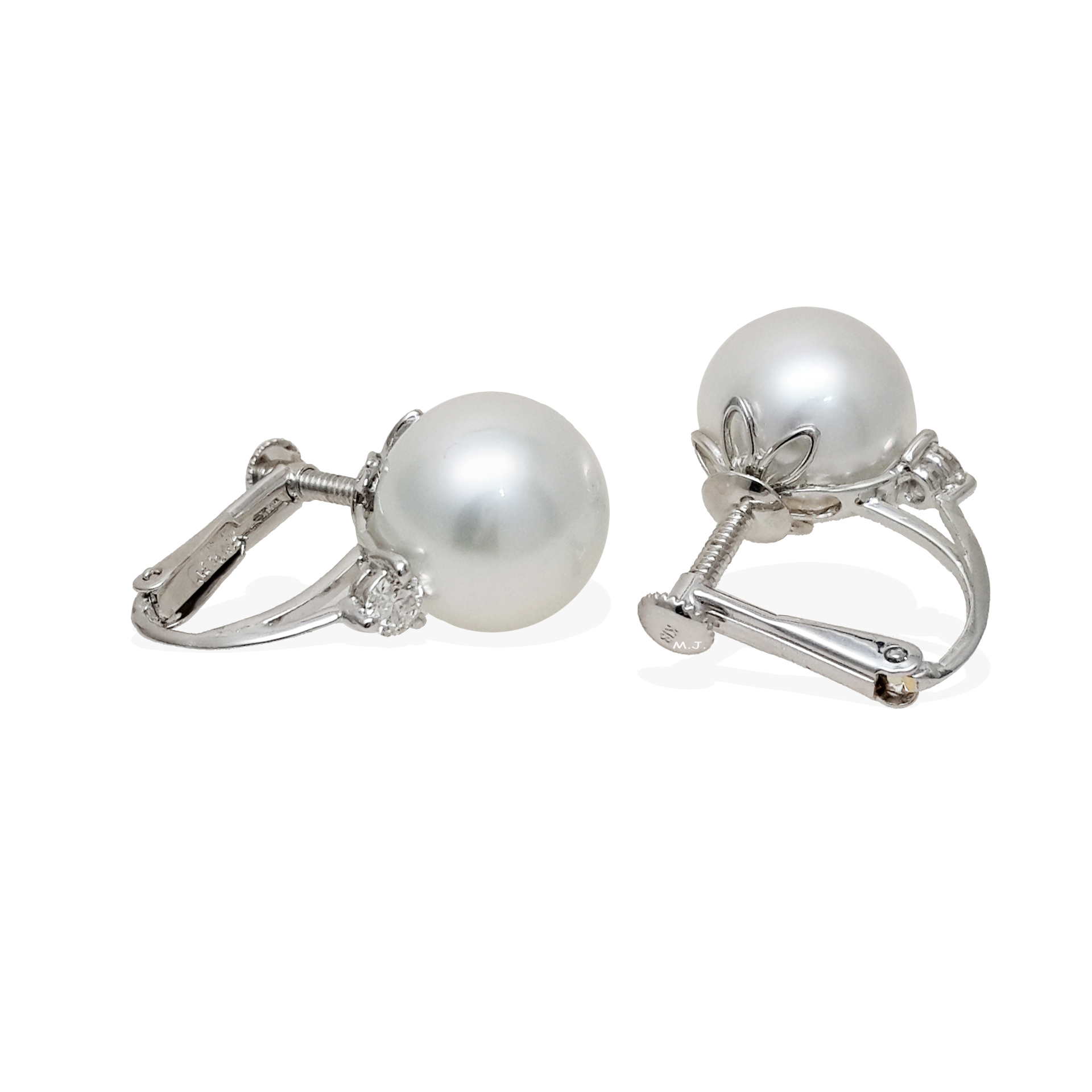 South Sea pearl size is around 11.5mm. 2 diamonds total weight 0.26 carat. May buy the diamond setting separately.
