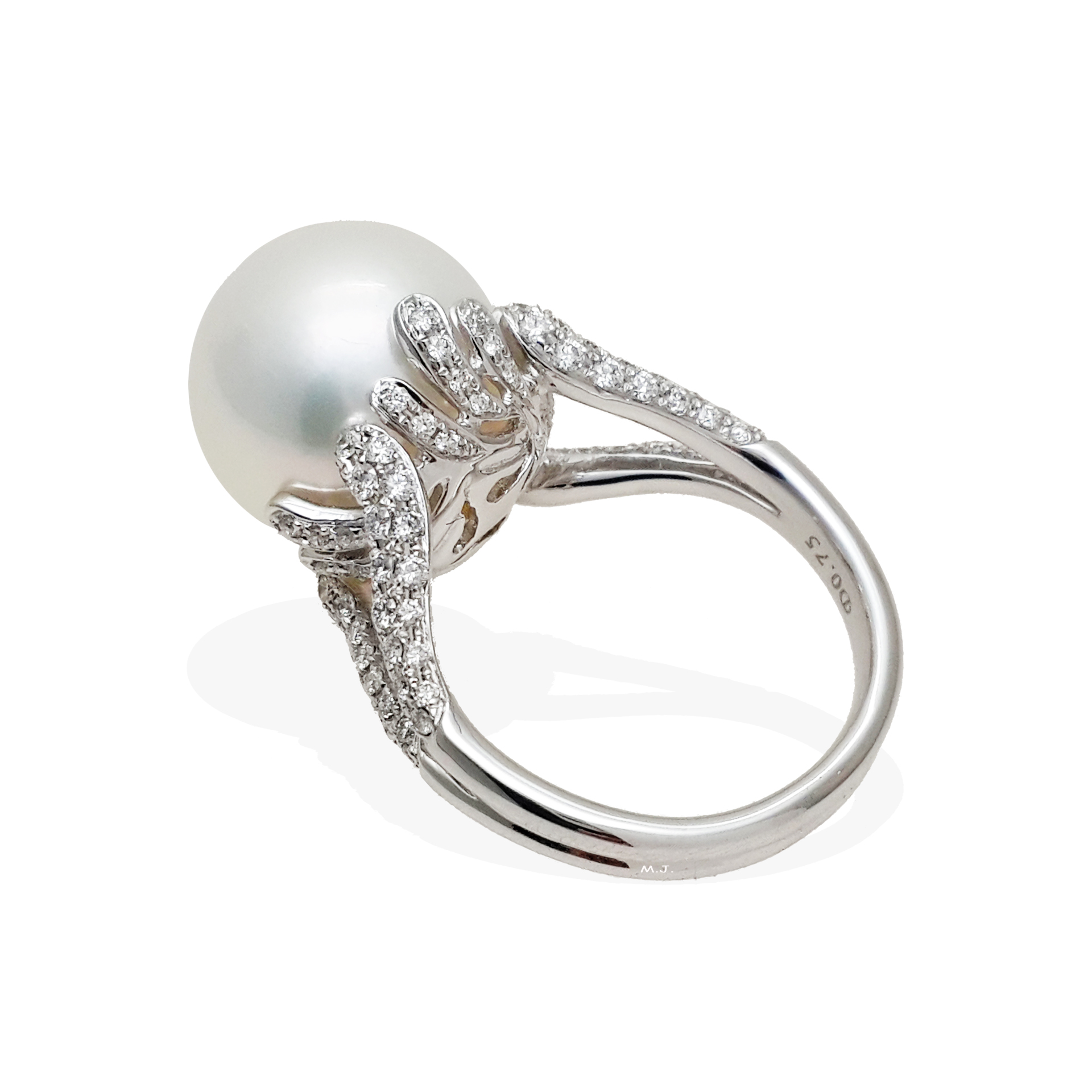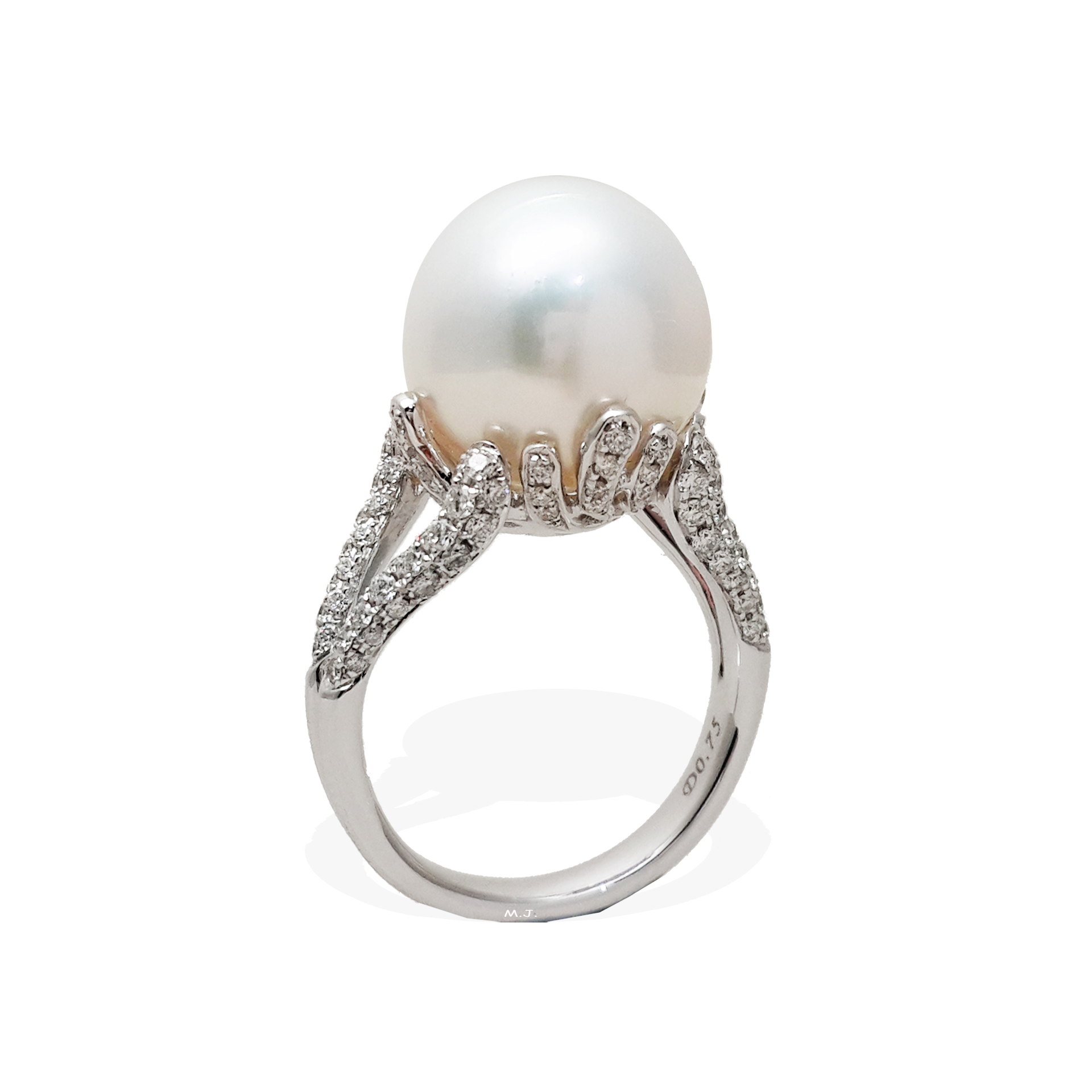 South Sea pearl size is around 13.45mm. Diamonds total weight 0.75 carat. May buy the diamond setting separately.